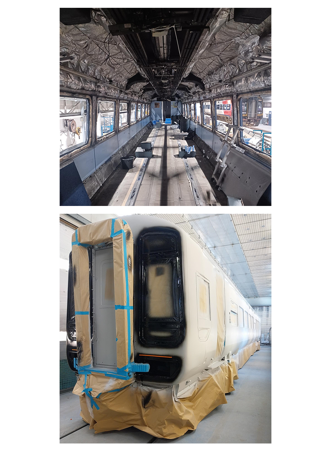 The work, known as a C6, involves overhauling all the customer facing elements of the train, with the entire interior stripped out and either refurbished or replaced if needed. Apart from a few components such as air conditioning, CET/toilet tanks, and door valves, all the work is being carried out by the Bournemouth depot team.