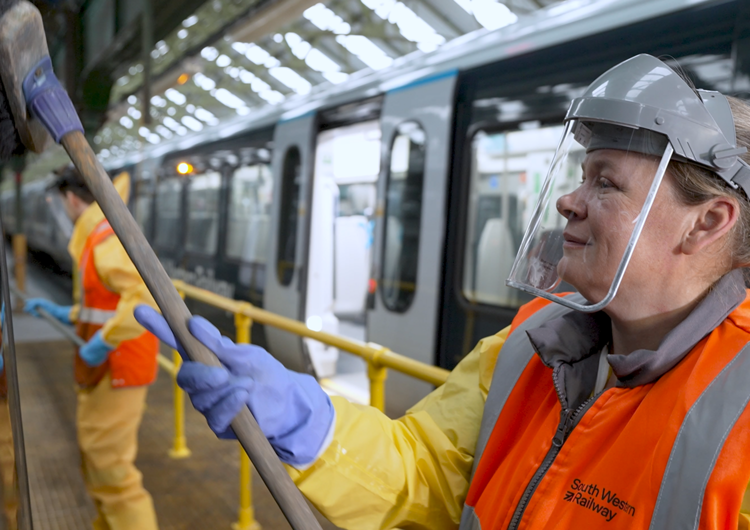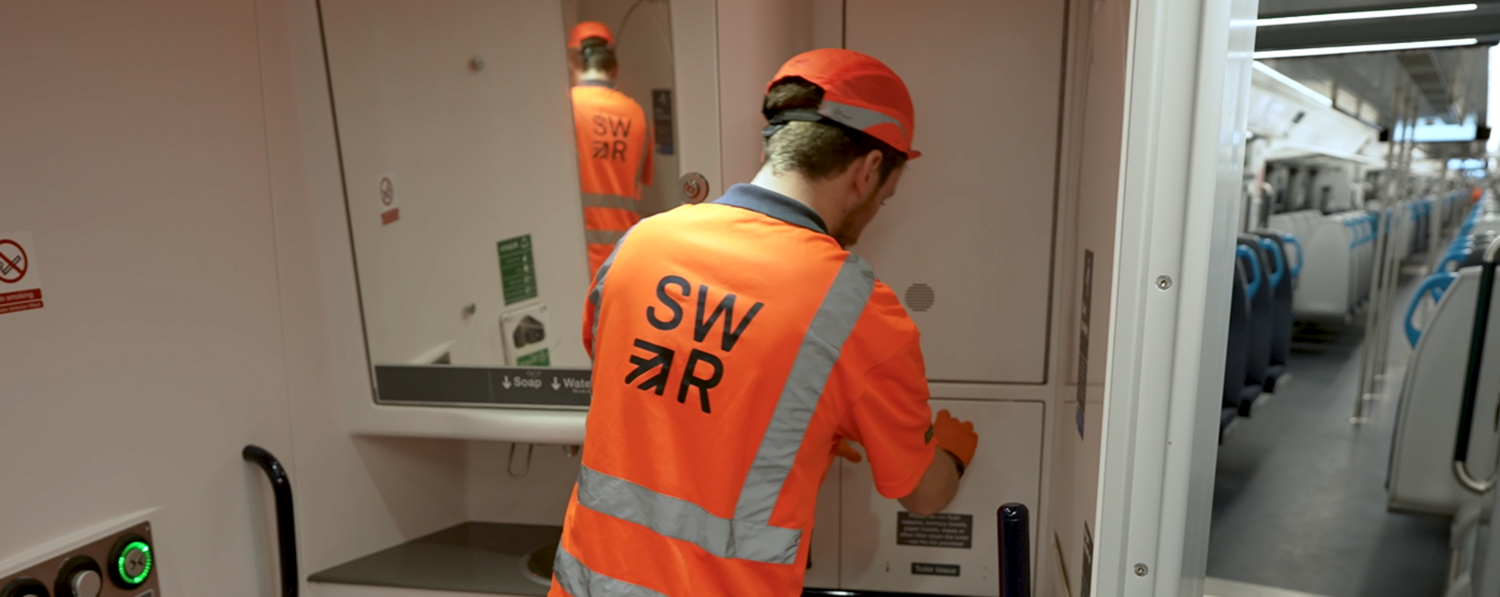 In transit teams operate across the network while trains are in service. They move between units collecting rubbish, wiping spills and responding to issues as they arise. Station based colleagues at locations such as Windsor, Reading and Portsmouth Harbour also provide rapid support while trains turn around in service. Together, these teams help maintain a clean and comfortable environment inside the carriages, ensuring facilities are refreshed and surfaces and seating areas are cared for throughout the day.